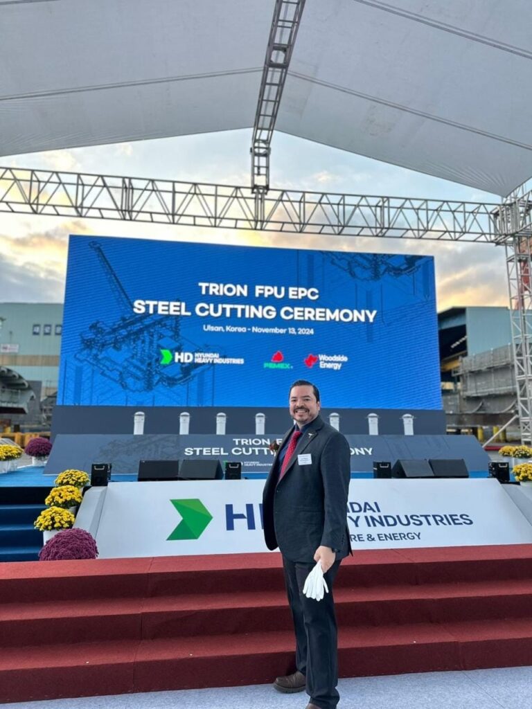 La empresa Woodside Energy, de la mano de Hyundai Heavy Industries, dio inicio al proceso para la construcción de la plataforma marítima, la cual forma parte de la inversión histórica de más de 11 mil millones de dólares del proyecto de Campo Trion, que se desarrolla frente a las costas de Matamoros, Tamaulipas.