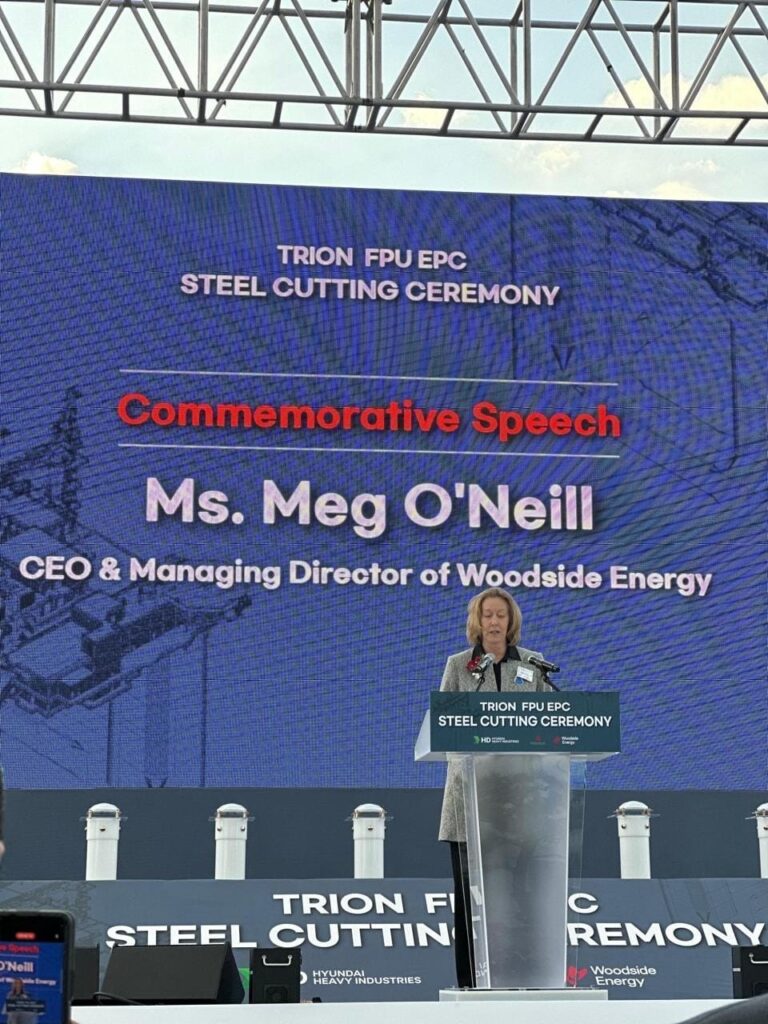 Silva Arizabalo acompañó al director general de Woodside, Meg O’Neill, quien reconoció la importancia de iniciar esta fase del proceso con HHI para la producción de la unidad flotante.