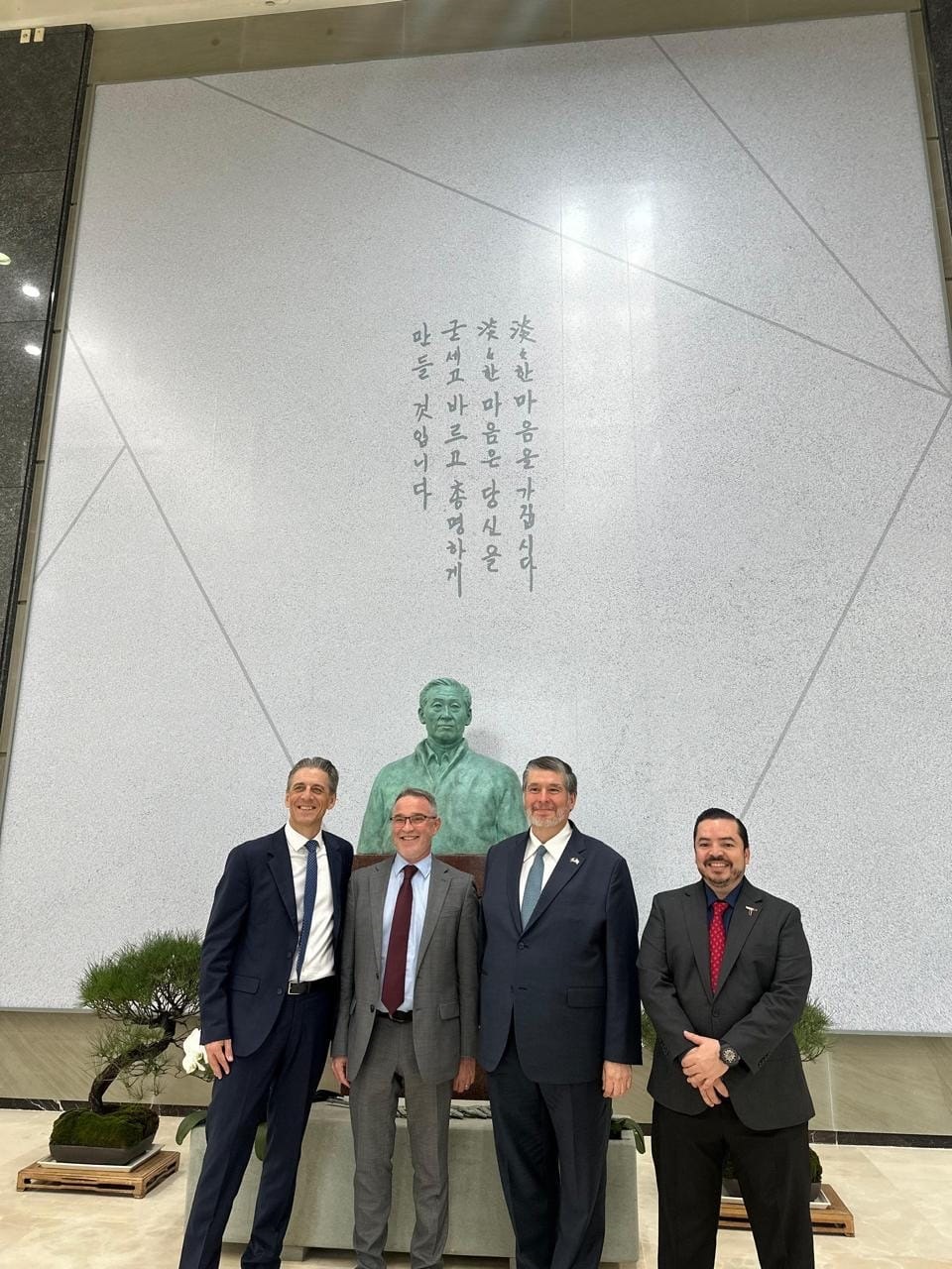 Seúl, Corea del Sur.- El secretario de Desarrollo Energético, José Ramón Silva Arizabalo, en representación del gobernador Américo Villarreal Anaya, participó en la instalación del primer tubo de la plataforma marítima de producción en aguas ultraprofundas que se utilizará en el proyecto Campo Trion, frente a las costas de Tamaulipas.