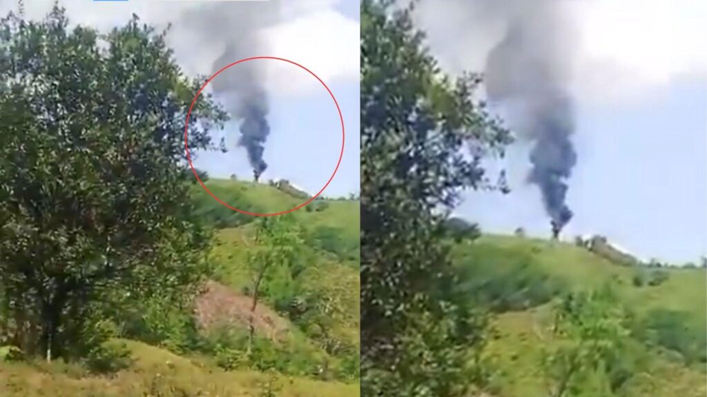 El mandatario de Antioquia compartió un video donde es posible ver una columna de humo negro, en el punto donde cayó el helicóptero derribado.