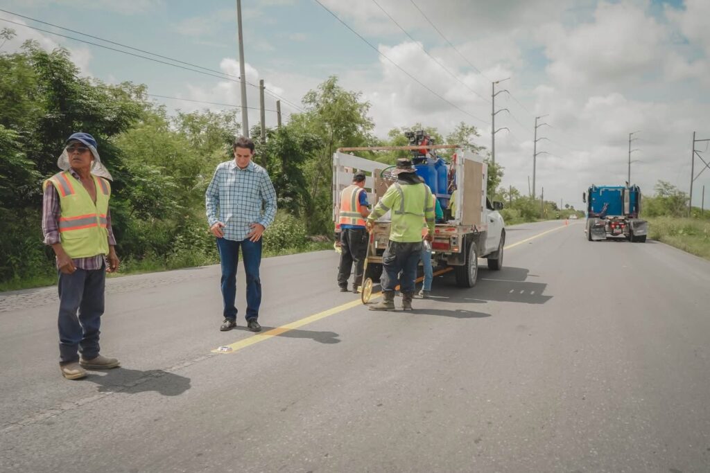 El Presidente Municipal, Dr. Alberto Alanis Villarreal superviso los trabajos de reencarpetado que se implementaron en la Carretera Valle Hermoso – Empalme, a la altura del km 74 con Brecha 122.
