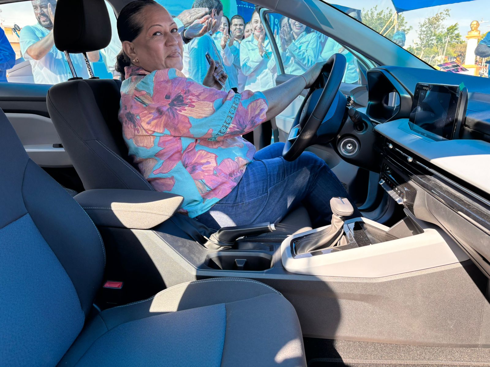 La afortunada ganadora del primer premio un AVEO 2025 último modelo fue la maestra Alma Dinorah García Solís, premio que fue entregado por el presidente municipal Dr. Alberto Alanís Villarreal.