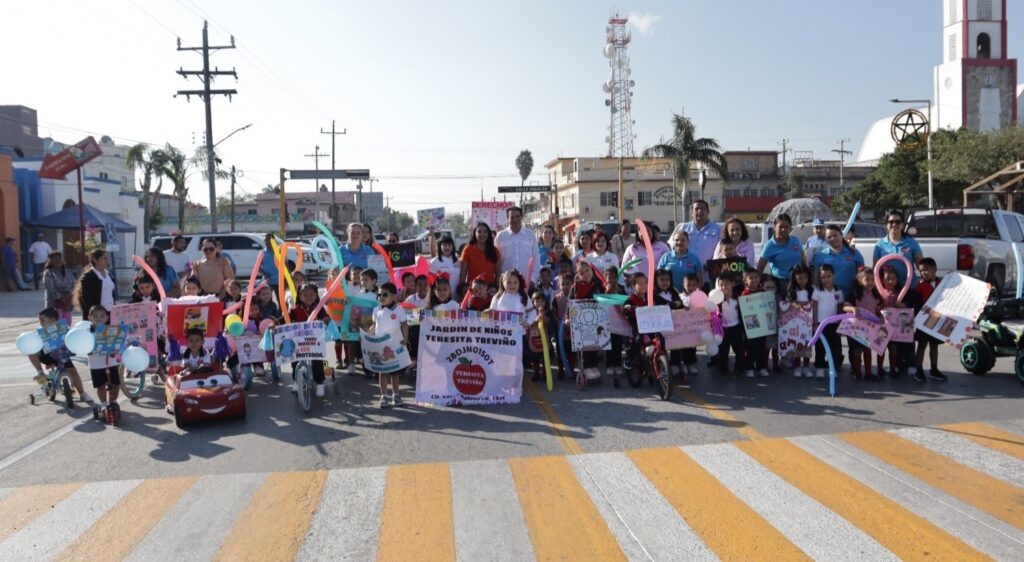Fue en punto de las 9:00am, donde la Dra. Nadia, junto a su equipo de colaboradores, asistieron al Jardin de Niños Teresita Treviño, institución Educativa, que fue invitada a participar en esta ocasión, por lo que desfilaron por la calle Juárez, para posteriormente dirigirse hacia la plaza principal de esta ciudad, junto a los pequeños, personal docente, administrativo y padres de familia quienes participaron en este acto y quienes fueron recibidos por el Presidente Municipal, Dr. Alberto Alanís Villarreal, frente al Palacio de Gobierno.