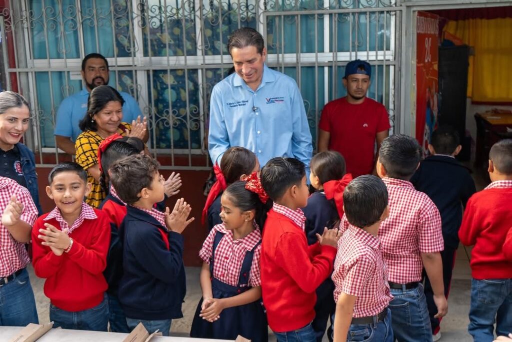 Cd. Valle Hermoso Tamaulipas.- El Presidente Municipal, Dr. Alberto Alanís Villarreal, visitó la Escuela Primaria Lic. Antonio Caso, turno matutino, donde realizó la entrega de un importante apoyo consistente en 55 m² de vitropiso, destinado al aula del grupo de 2° “C”, una acción que fortalece los espacios donde se forman las nuevas generaciones.