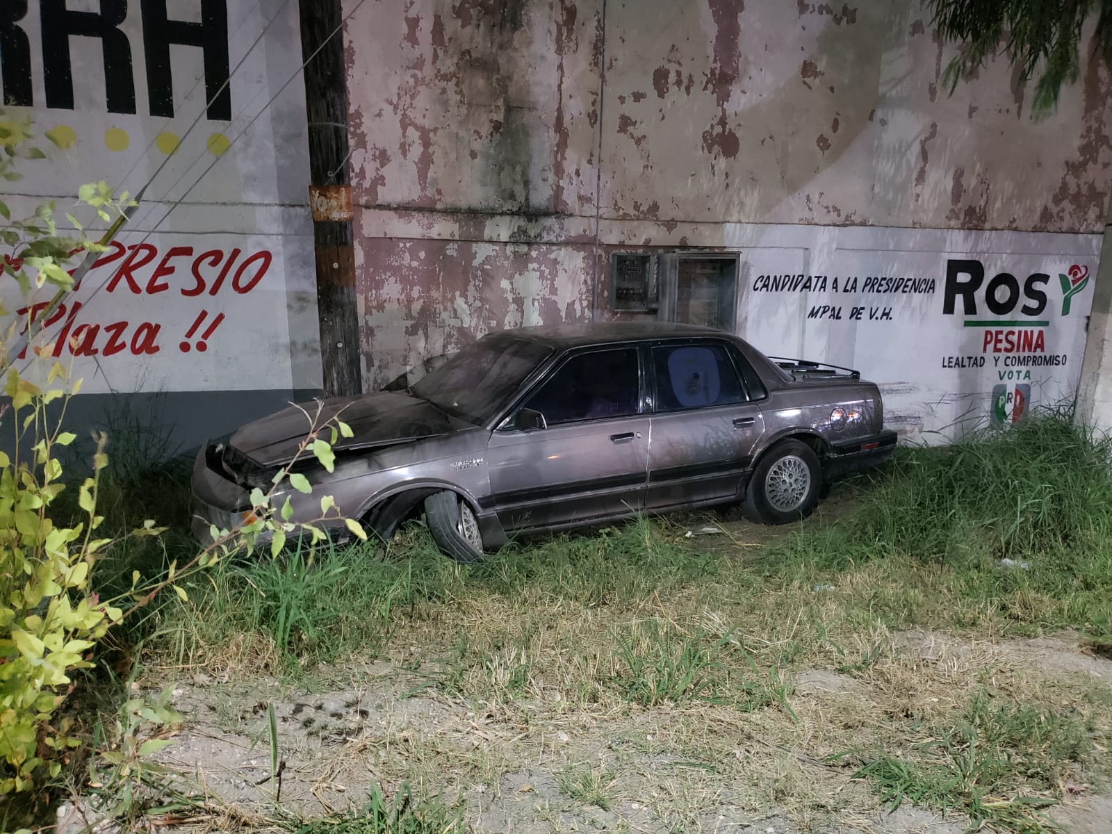 Por la aparente culpa de un trailero, un hombre que se identificó cómo Raúl, se salió de la carretera en su auto Cutlass de modelo antiguo y chocó con la barda de una bodega.