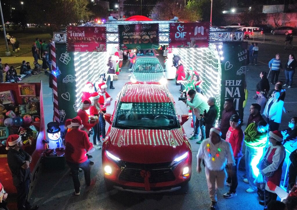 Matamoros, Tamaulipas.- Lleno de color, luces, regalos y alegría se vivió el Túnel Navideño del Gobierno Municipal de Matamoros en el Parque Olímpico, donde cientos de matamorenses pudieron disfrutar de este gran espectáculo y se sumaron a la Colecta de Juguetes.