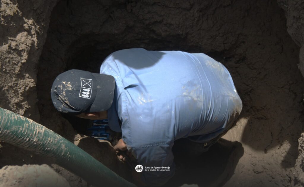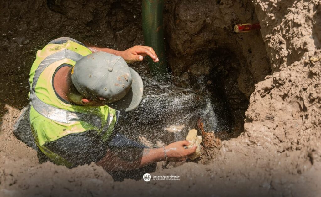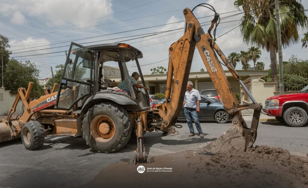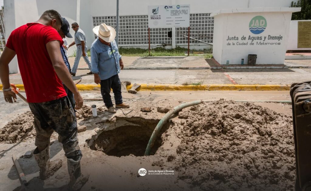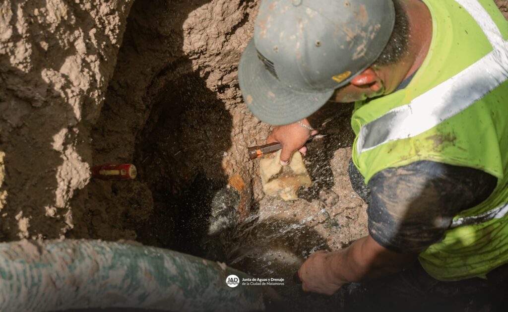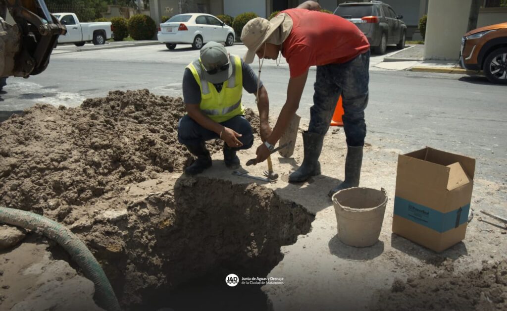 H. Matamoros, Tamaulipas.- El Gobierno de Beto Granados, a través de la Junta de Aguas y Drenaje, realizó la reparación de una fuga de agua en la colonia Moderna.