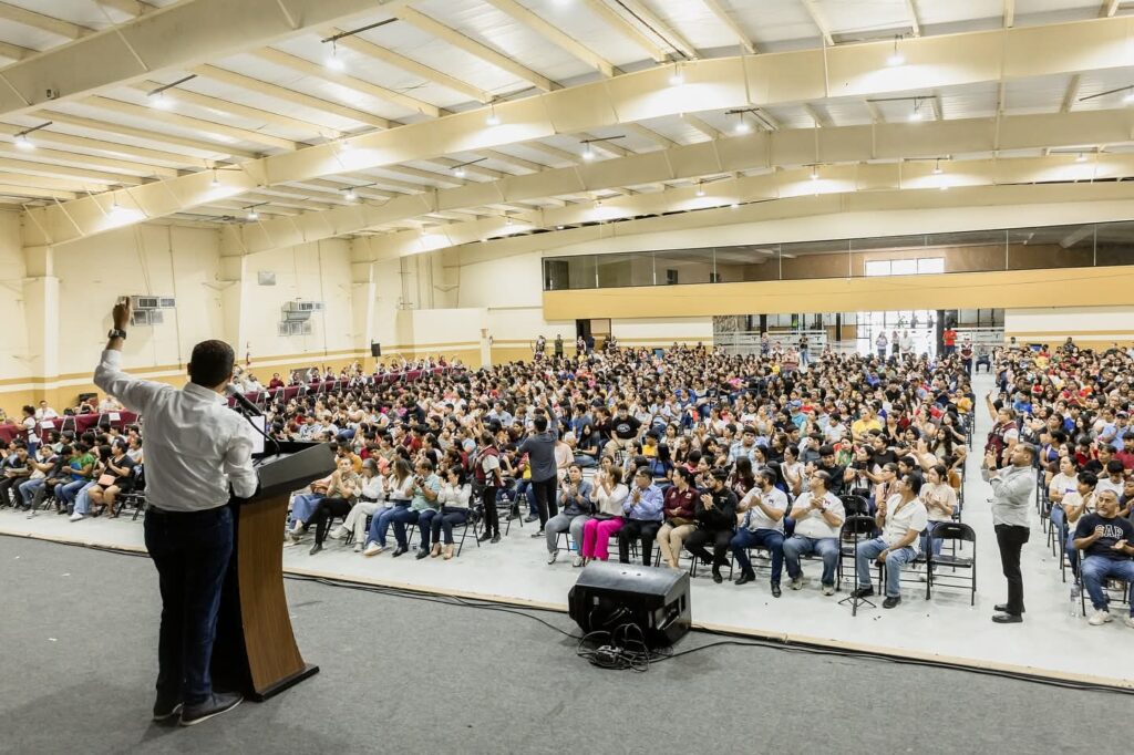 El evento se llevó a cabo en el Centro de Convenciones Mundo Nuevo, como parte de la Acción Social Municipal «Ruta Segura: Avanzando por la Educación», una iniciativa que otorga un estímulo económico único con el objetivo de respaldar el pago de inscripción del ciclo escolar 2025–2026.