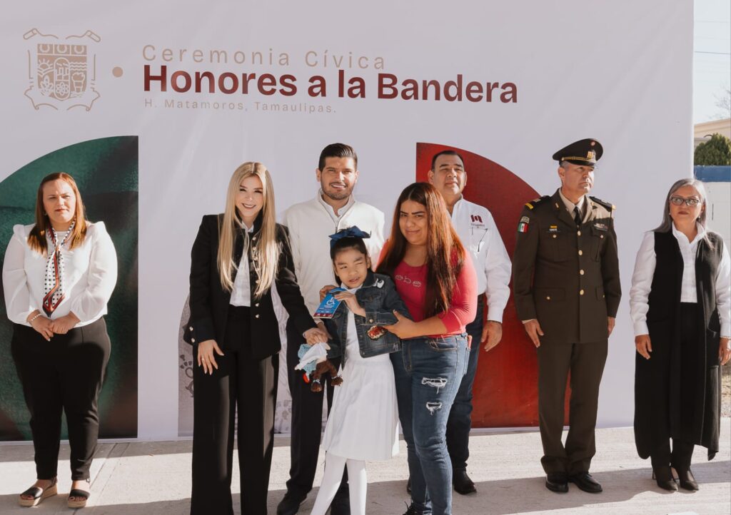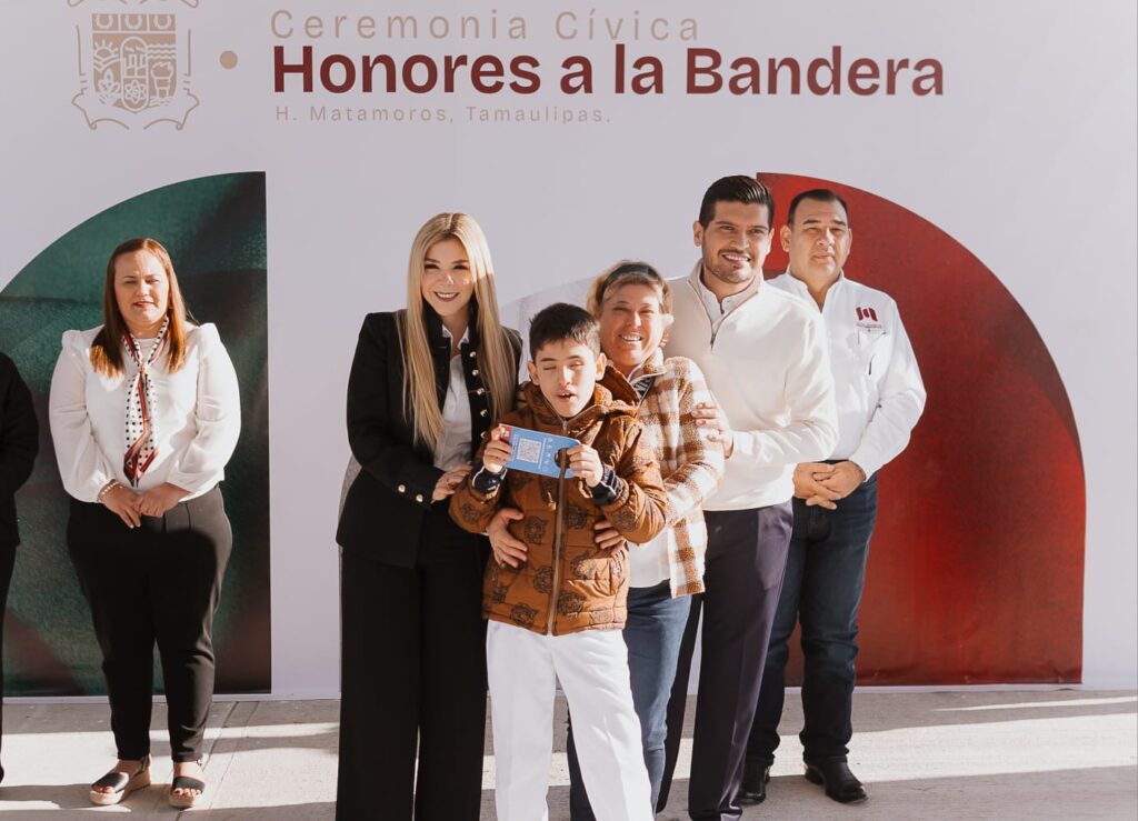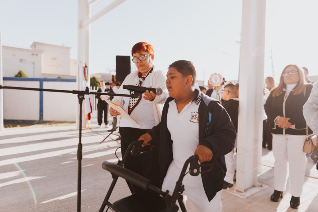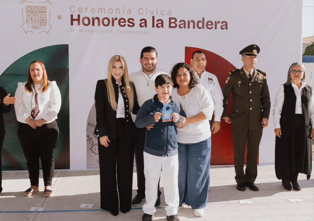 H. Matamoros, Tamaulipas.- La mañana de este lunes 10 de marzo, el alcalde de Matamoros, Beto Granados, encabezó la ceremonia de honores en el Centro de Atención Múltiple (CAM) Tzehuali 1 de Educación Especial, donde dio inicio a la campaña «Mi lugar, mi derecho». Durante el evento, entregó los primeros tarjetones de discapacidad universal, temporal y materno a ciudadanos beneficiados.