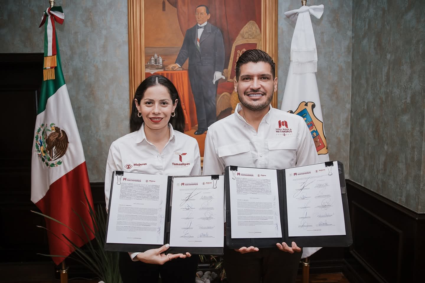 H. Matamoros, Tamaulipas.- El Gobierno Municipal de Matamoros, que preside el alcalde, Beto Granados, refrendó su compromiso con la equidad de género y la atención a mujeres en situación de vulnerabilidad, mediante la firma de un convenio de comodato con el Instituto de las Mujeres en Tamaulipas, que encabeza la directora general Marcia Benavides Villafranca.