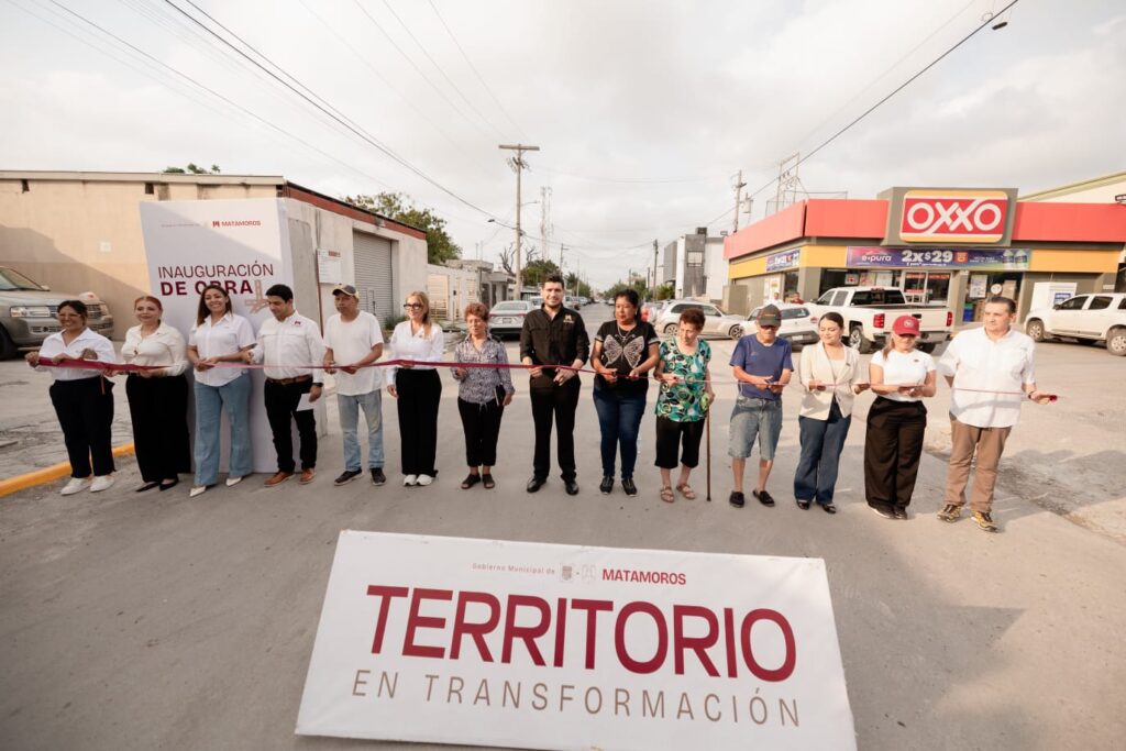 H. Matamoros, Tamaulipas.- Con una inversión superior a los 3 millones 500 mil pesos provenientes del programa de regularización de vehículos usados de procedencia extranjera (REPUVE), el presidente municipal, Beto Granados, inauguró la obra de pavimentación y rehabilitación de drenaje en la calle Lic. Francisco Castellanos.