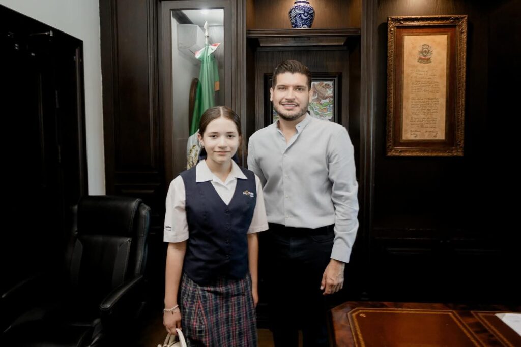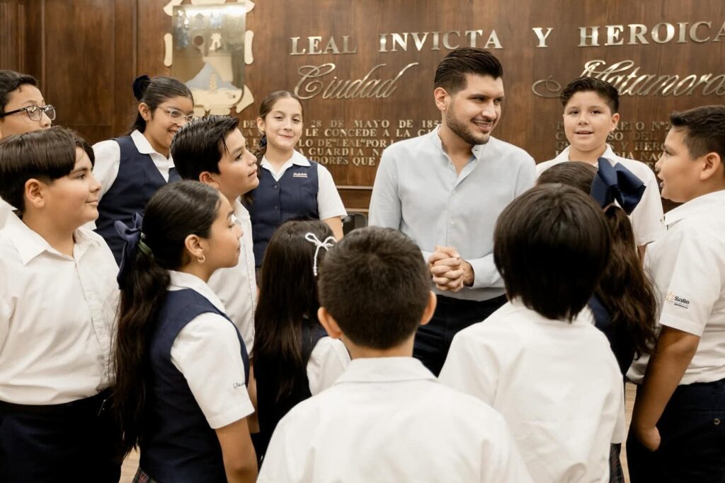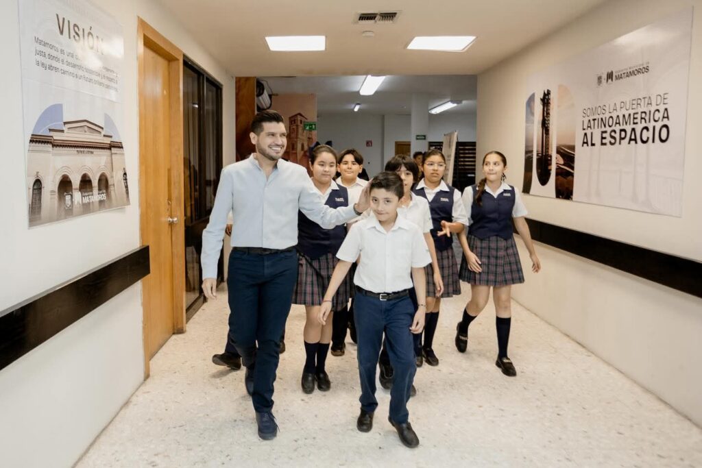 H. Matamoros, Tamaulipas.- El alcalde de Matamoros, Beto Granados, recibió con gran entusiasmo a un grupo de alumnos del Colegio La Salle, quienes realizaron una visita a la Presidencia Municipal como parte de sus actividades formativas.