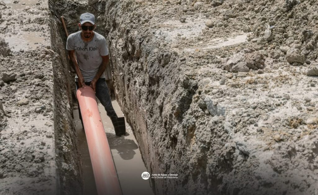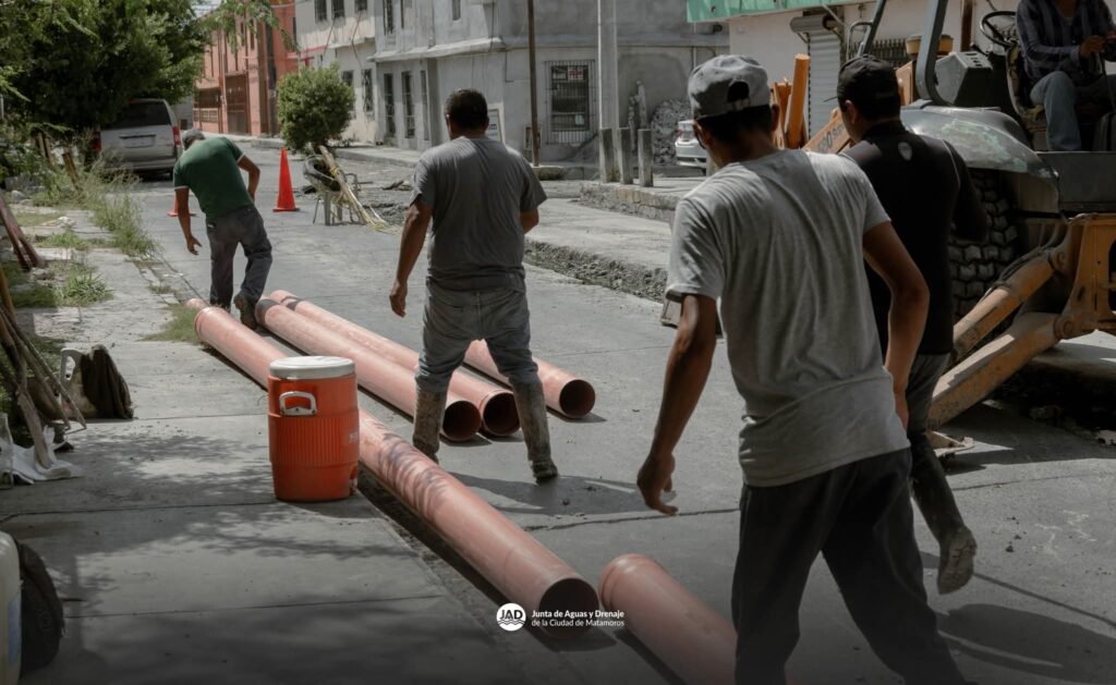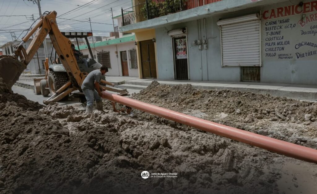 Matamoros, Tam.- El Gobierno Municipal que encabeza Beto Granados informó que personal de la Junta de Aguas y Drenaje de Matamoros realiza labores de reparación en una línea de drenaje sanitario ubicada en las calles Balsas y Roble de la colonia Mariano Matamoros.