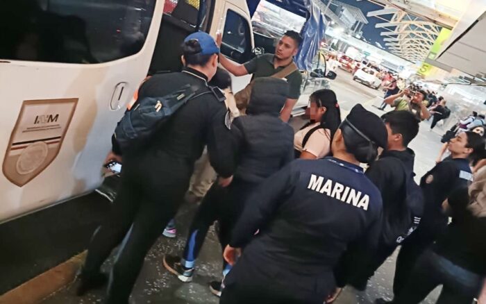 “Las acciones se llevaron a cabo en el área de mostradores de mencionada aerolínea, quien al detectar que la persona que trasladaba a los menores portaba identificaciones apócrifas, informó a personal naval de la UNAPAP para que tomaran las acciones necesarias.”