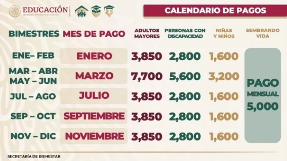 La gran mayoría de los beneficiarios recibirán 3,850 pesos por el bimestre mencionado, sin embargo, habrá quienes recibirán un pago de 11,500 pesos.