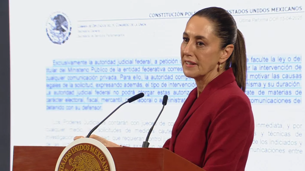 “Las comunicaciones privadas son inviolables. La ley sancionará penalmente a quien viole la privacidad”, afirmó Sheinbaum al citar el artículo 16 constitucional.