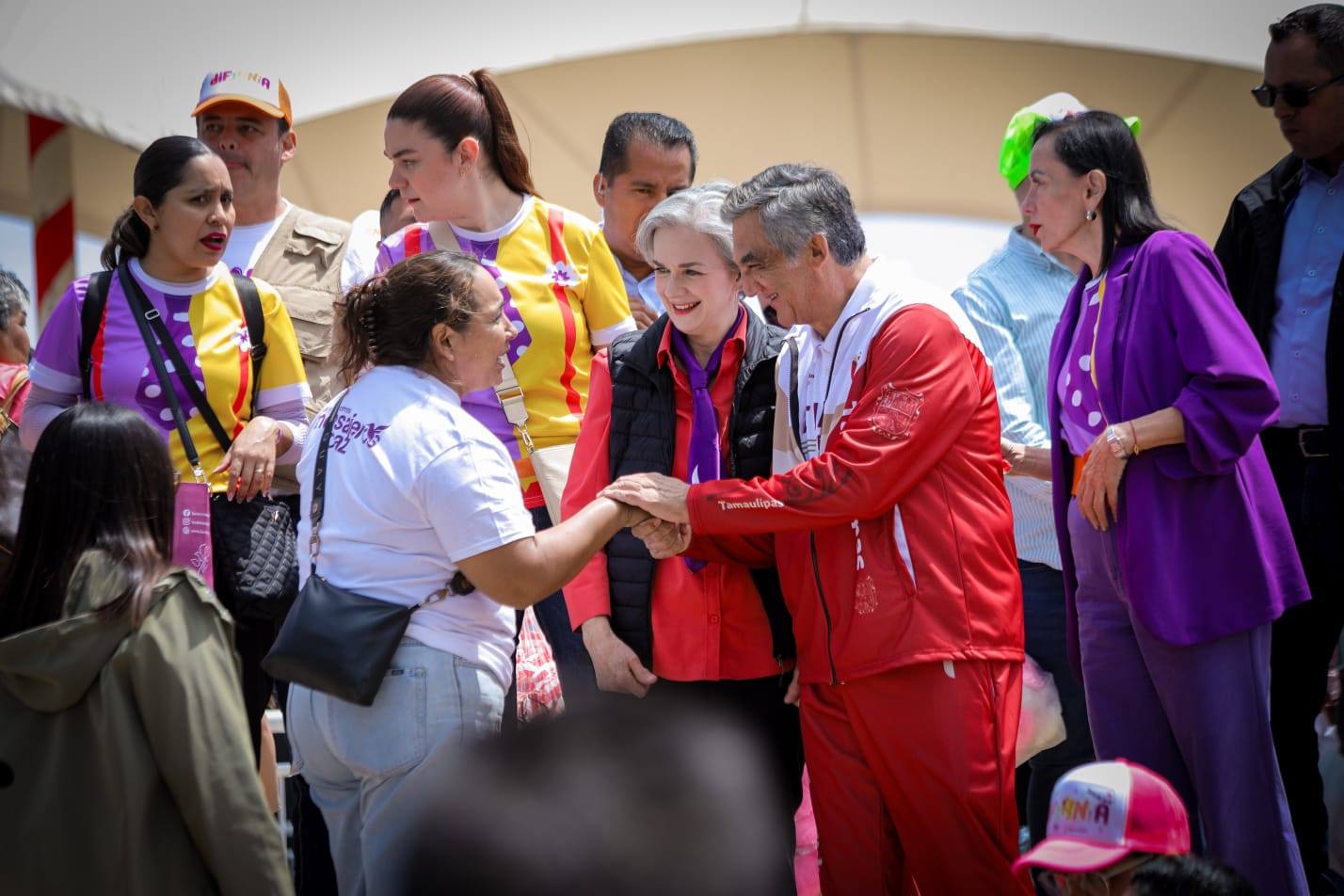 El gobernador Américo Villarreal Anaya y la presidenta del Sistema DIF Tamaulipas, María de Villarreal, convivieron con miles de familias que se dieron cita en DIFzania, evento que promueve la recreación, la sana convivencia y el fortalecimiento de los valores familiares.