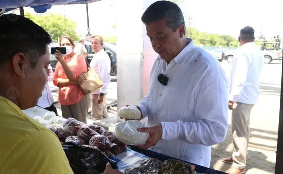 El gobernador hasta bromeó con los reporteros que acudieron a cubrir el evento y se dio tiempo para comprar a un vendedor ambulante quesos y carne. “Es que hoy ando bien y de buenas”, le dijo al vendedor.