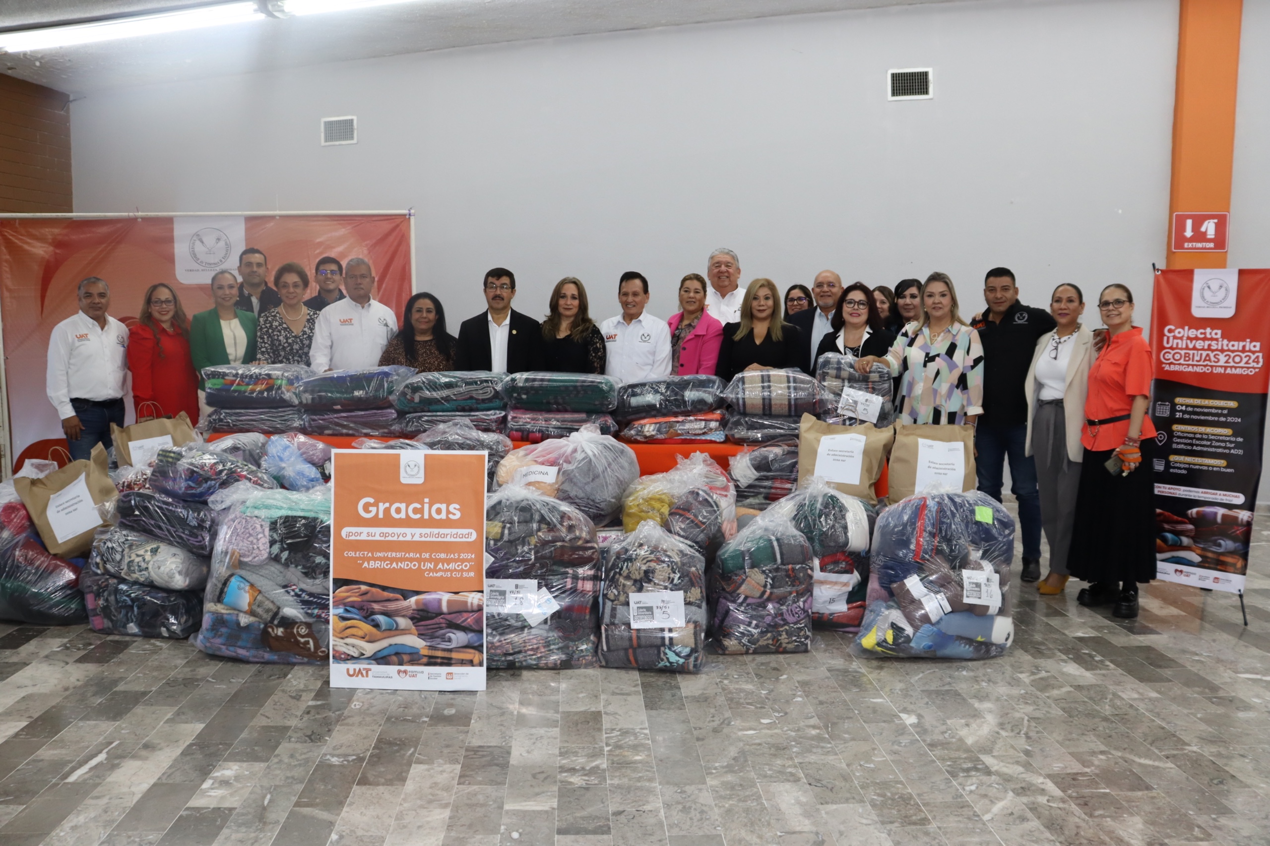 « Mediante la Colecta Universitaria de Cobijas 2024 “Abrigando un Amigo», la Universidad Autónoma de Tamaulipas (UAT) ha reunido la colaboración de todas sus dependencias académicas y administrativas para apoyar durante la temporada invernal a las familias más vulnerables en las distintas comunidades del estado. «