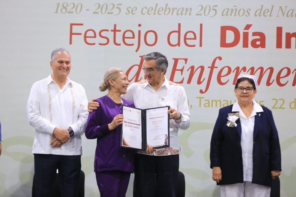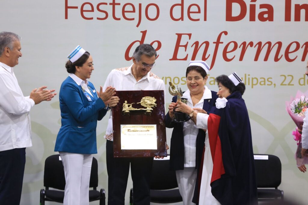 «Su liderazgo cercano, ético y sensible ha dignificado nuestra labor, impulsando políticas de salud pública que promueven mejores condiciones laborales, mayor capacitación profesional y un reconocimiento justo a quienes día a día brindamos cuidado y esperanza a la población tamaulipeca», expresó.