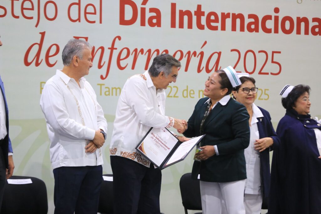 Por su parte, el secretario de Salud, Vicente Joel Hernández Navarro, afirmó que este reconocimiento es un compromiso cumplido del gobernador Américo Villarreal y un homenaje a la vocación de servicio, la trayectoria, el liderazgo de las y los enfermeros de Tamaulipas, «con el que día a día brindan cuidados de calidad al paciente, a su familia y a la comunidad», dijo.