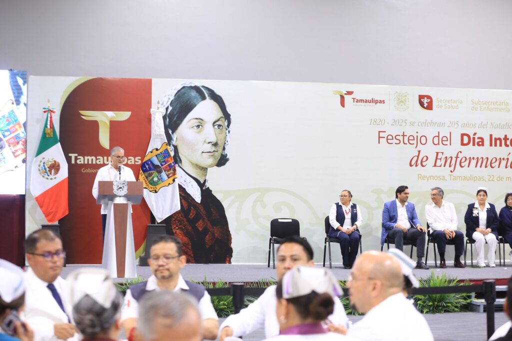 Al presidir el festejo del Día Internacional de la Enfermería, que congregó a cerca de 3 mil profesionales de la salud, en el Centro de Convenciones de Reynosa, acompañado por Vicente Joel Hernández Navarro, secretario de Salud, e Irma Barragán Alvarado, subsecretaria de Enfermería, el gobernador del Estado destacó el momento trascendente que vive el sistema de salud de nuestro país con el modelo IMSS-Bienestar, en donde la enfermería juega un papel importantísimo y sustantivo.