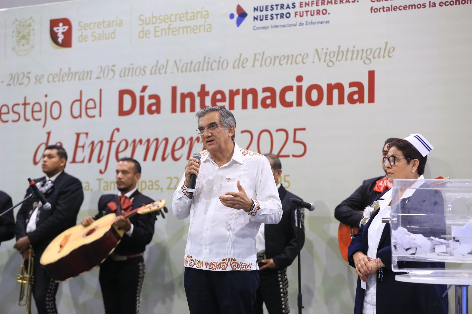 Al presidir el festejo del Día Internacional de la Enfermería, que congregó a cerca de 3 mil profesionales de la salud, en el Centro de Convenciones de Reynosa, acompañado por Vicente Joel Hernández Navarro, secretario de Salud, e Irma Barragán Alvarado, subsecretaria de Enfermería, el gobernador del Estado destacó el momento trascendente que vive el sistema de salud de nuestro país con el modelo IMSS-Bienestar, en donde la enfermería juega un papel importantísimo y sustantivo.
