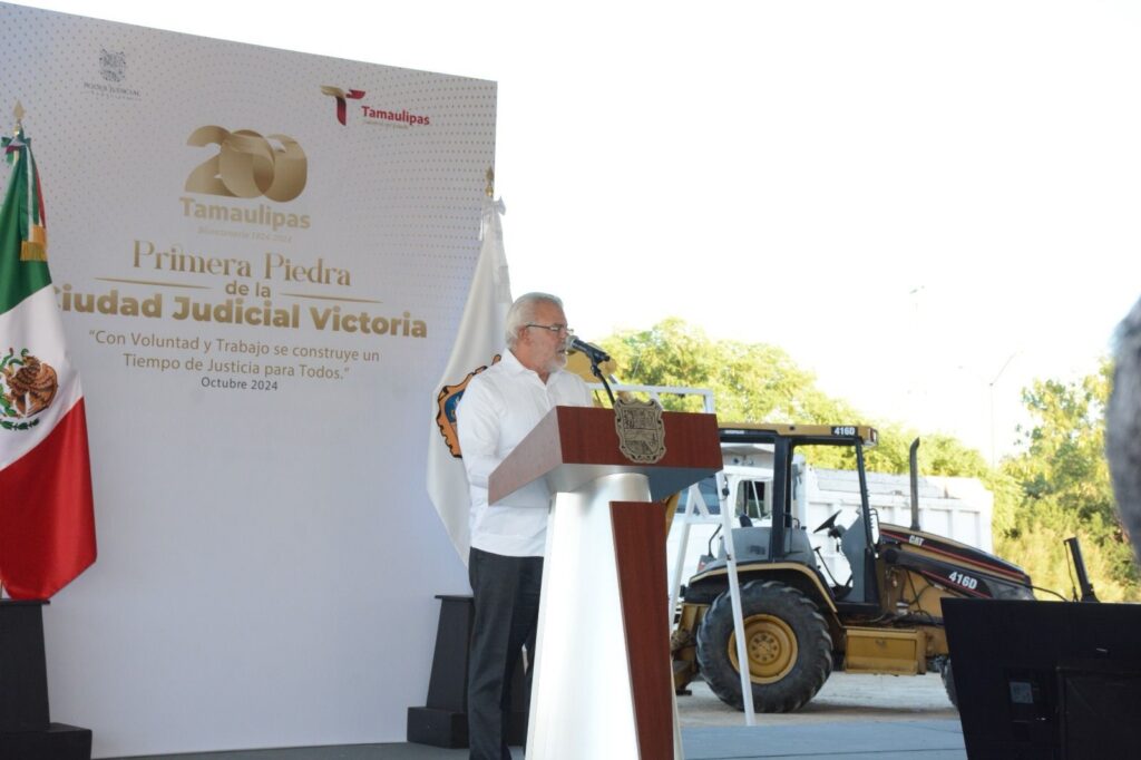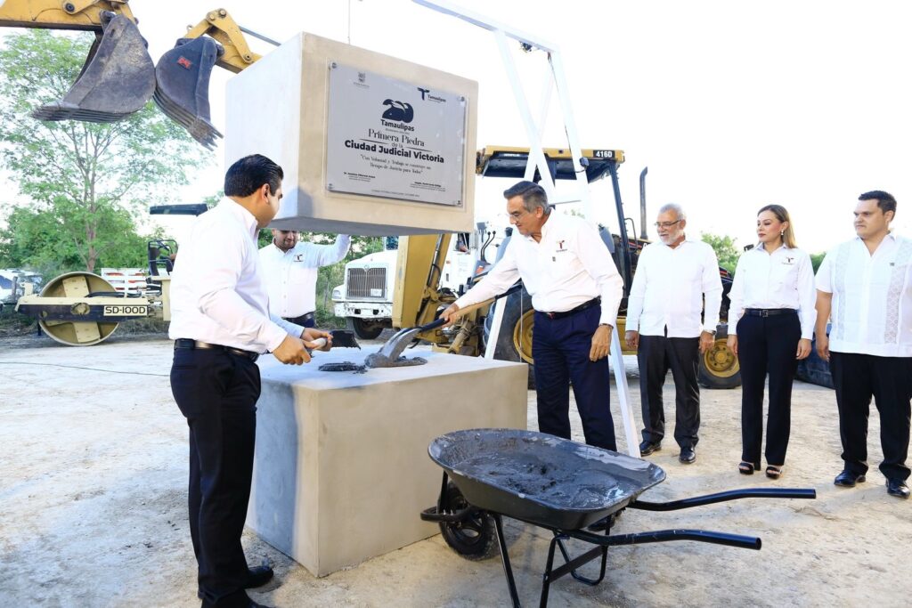 Ciudad Victoria, Tamaulipas.- Al colocar la primera piedra de la construcción de la nueva Ciudad Judicial en Victoria, que tendrá una inversión de 275 MDP, el gobernador Américo Villarreal Anaya, reiteró todo su apoyo para la modernización y dignificación de las condiciones materiales para el desempeño de la delicada misión de impartir justicia.
