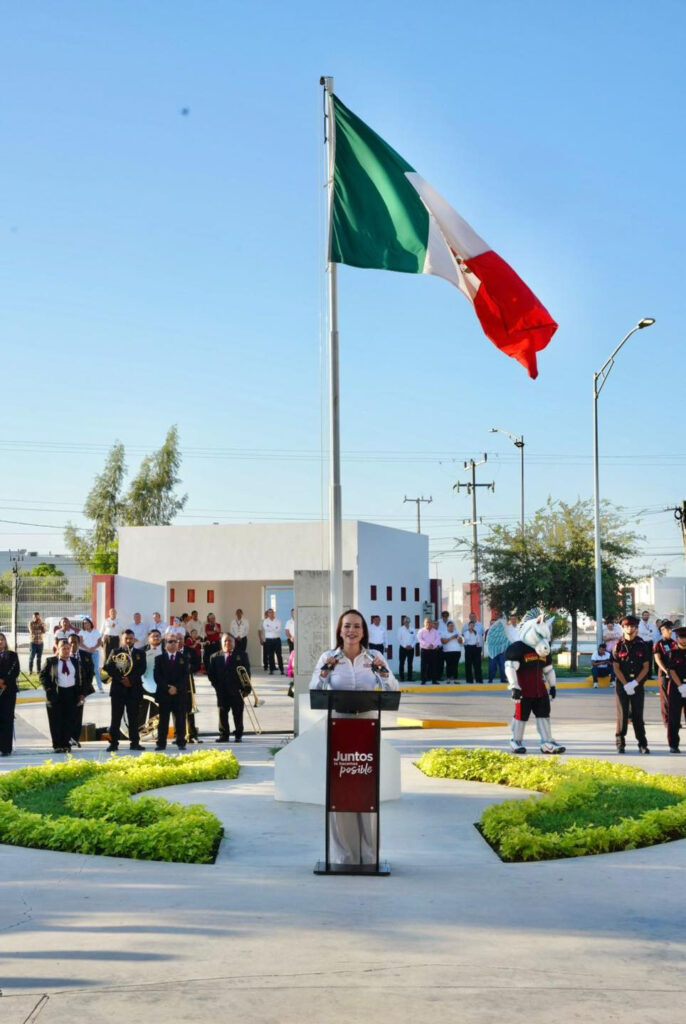 Al encabezar los tradicionales honores a la bandera en la preparatoria municipal “José Vasconcelos” , la alcaldesa entregó a maestros y alumnos de preescolar, primaria, secundaria y prepas municipales, un paquete completo de herramientas que serán de utilidad para dar puntual mantenimiento a las instituciones educativas y mantenerlas en óptimas condiciones.