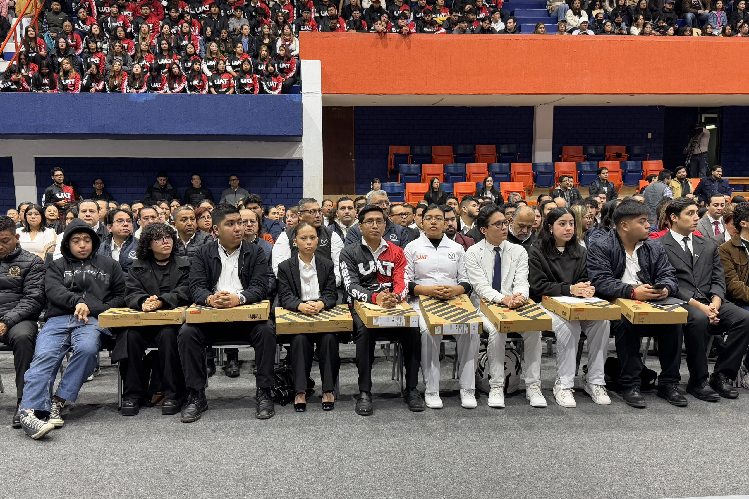 De manera simbólica, durante esta ceremonia se entregaron 907 computadoras a estudiantes. Esto con el apoyo del gobernador Américo Villarreal, con el que se da continuidad a este programa sin precedentes, el cual refleja la visión de una Universidad inclusiva y centrada en las necesidades de su sociedad.