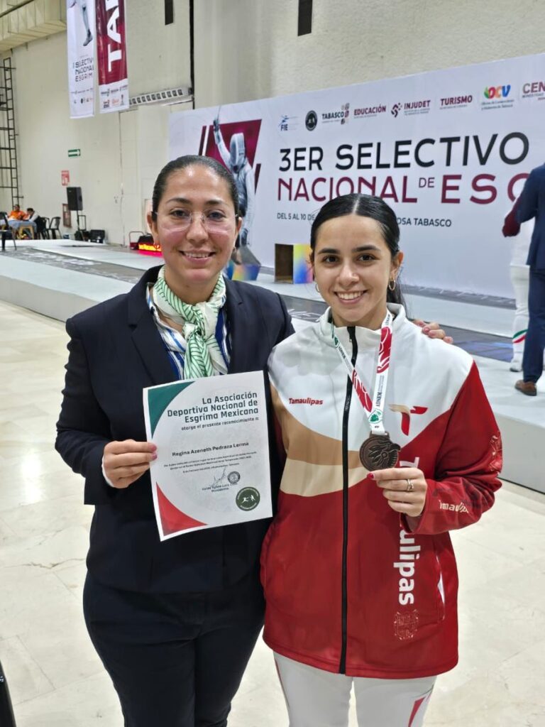 « La Universidad Autónoma de Tamaulipas volvió a hacerse presente en el escenario deportivo nacional, luego de que sus representantes, Regina Azeneth Pedraza Lerma y Brandon Alan Romo Beltrán subieran al podio en el Tercer Selectivo Nacional de Esgrima, celebrado en Villahermosa, Tabasco. «