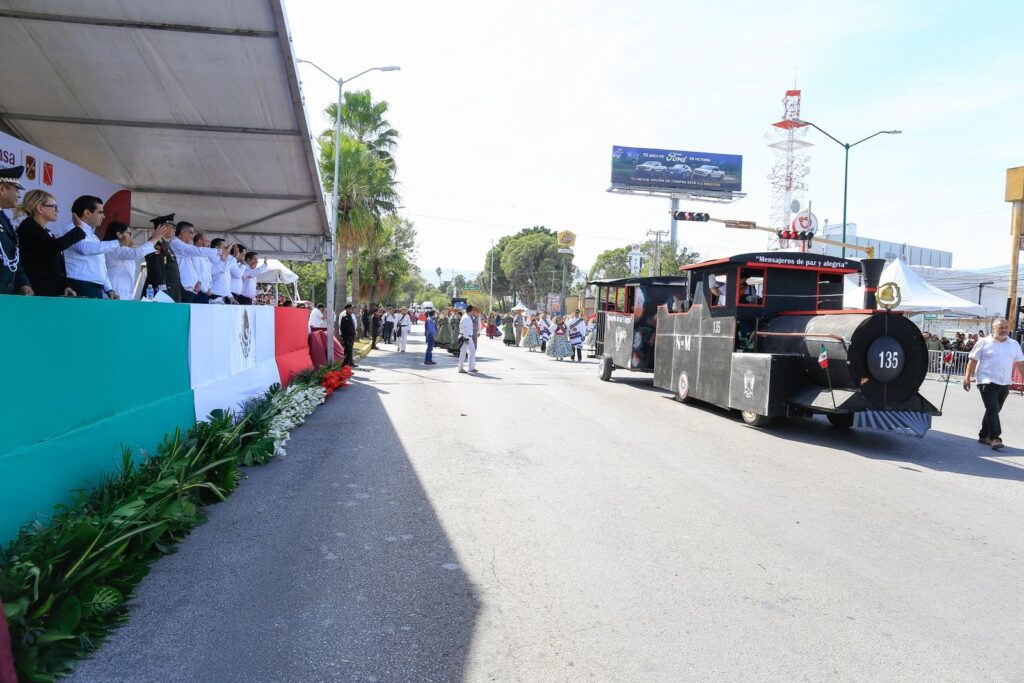 Acompañado por el general DEM Enrique García Jaramillo, comandante de la 48ª Zona Militar, el gobernador Américo Villarreal atestiguó, por espacio de casi cuatro horas, el paso de los contingentes llenos de colorido, música tradicional mexicana y atuendos revolucionarios, todos ejecutando sus rutinas, tablas gimnásticas, pirámides monumentales y evoluciones ante el aplauso de los miles de familias congregadas a lo largo del bulevar Tamaulipas, de esta capital.