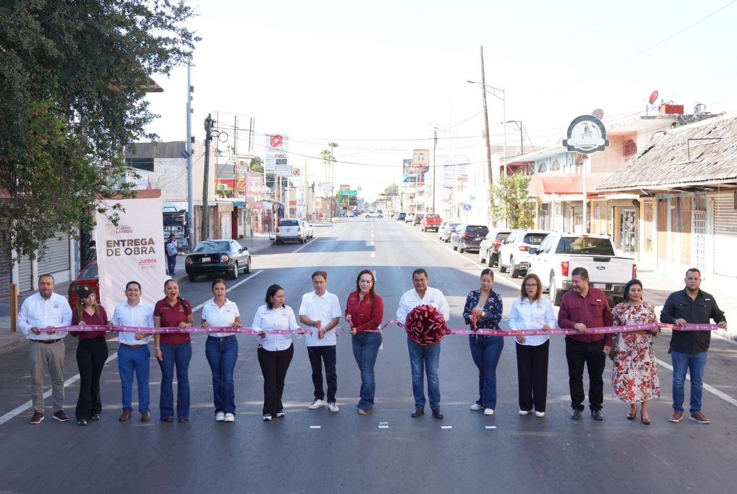 Entrega alcaldesa Carmen Lilia rehabilitación de drenaje sanitario en avenida guerrero para beneficio de comercios y ciudadanía