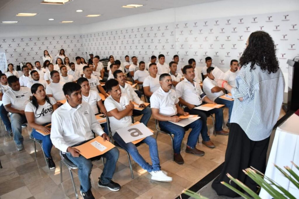 La secretaria del Trabajo y Previsión Social, Olga Patricia Sosa Ruíz, presidió este evento dando la bienvenida a trabajadoras y trabajadores agrícolas de 16 municipios que cumplieron los requisitos de la vacante solicitada por empresas extranjeras, que se dedican a labores en el campo.