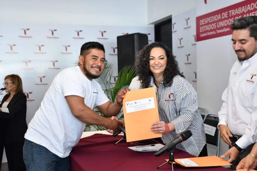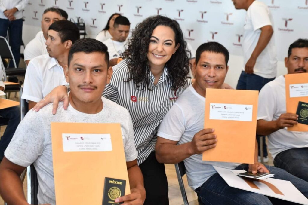 Ciudad Victoria, Tamaulipas.- El Gobierno de Tamaulipas de Américo Villarreal Anaya, a través de la Secretaría del Trabajo y el Servicio Nacional del Empleo, hizo entrega de documentos legales, a más de 40 personas de diversos municipios que calificaron para trabajar en labores agrícolas en Estados Unidos y Canadá, como parte del programa de Movilidad Laboral.