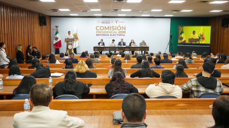 « Sumados a la iniciativa del Gobierno de México, a través de la Comisión Presidencial para la Reforma Electoral, el Gobierno del Estado y la Universidad Autónoma de Tamaulipas (UAT) pusieron en marcha los Diálogos sobre la Reforma Electoral, un ejercicio académico y ciudadano que tiene como propósito fomentar la exposición, reflexión crítica y el análisis plural en torno a los retos, alcances y perspectivas del sistema democrático nacional. «
