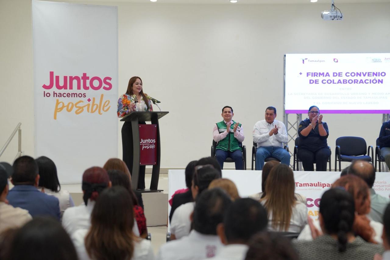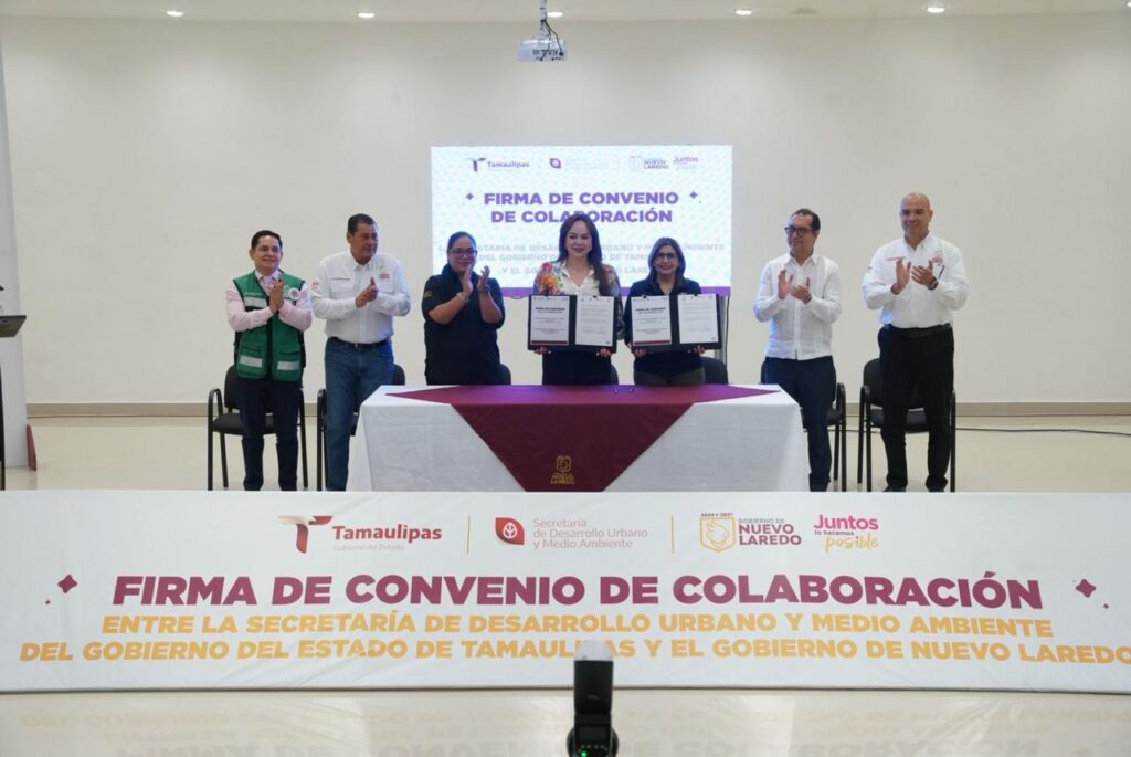 Nuevo Laredo, Tam.- Nuevo Laredo avanza con paso firme hacia un futuro más limpio y sostenible. La alcaldesa Carmen Lilia Canturosas Villarreal firmó un convenio clave con la Secretaría de Desarrollo Urbano y Medio Ambiente (SEDUMA) del Gobierno del Estado, encabezada por Karina Lizeth Saldivar Lartigue, para convertir al municipio en referente ambiental en Tamaulipas.