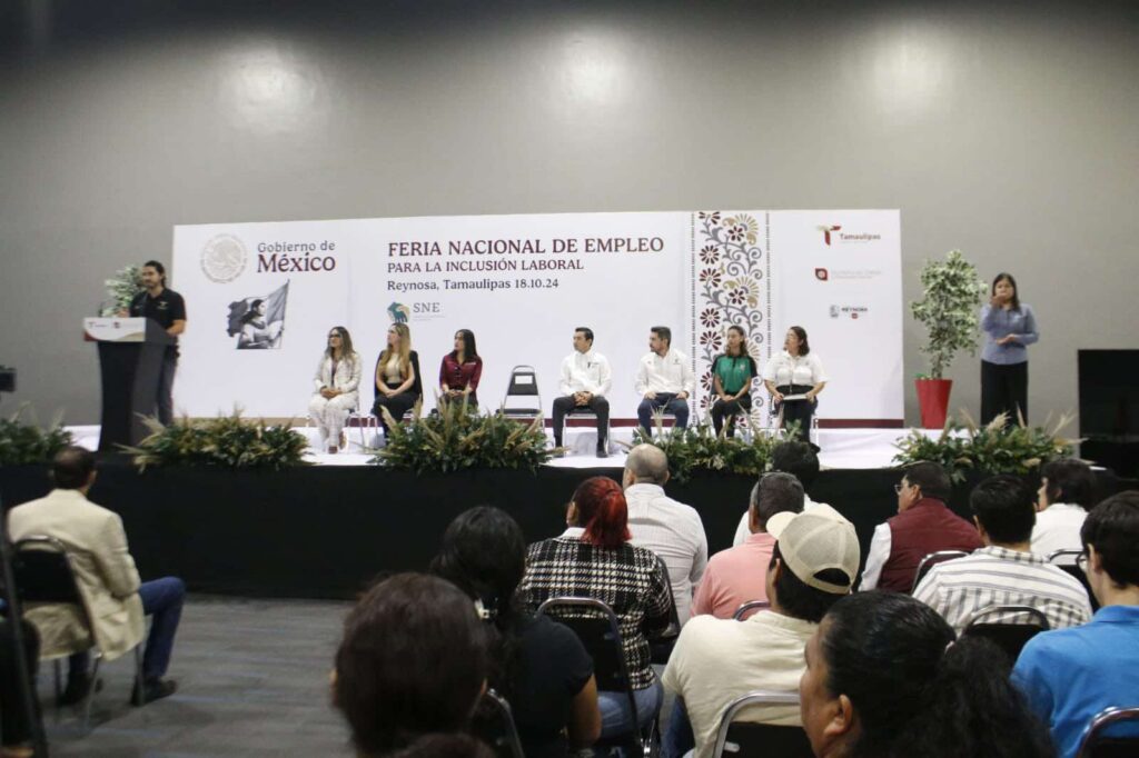 Reynosa.- La Feria Nacional de Empleo para la Inclusión Laboral Reynosa 2024, organizada por la Secretaría del Trabajo y Previsión Social de Tamaulipas, reunió a más de mil personas este viernes en el centro de convenciones, donde se ofertaron cientos de vacantes de empresas privadas y dependencias de gobierno estatal y federal, que son una puerta de oportunidad para quienes buscan un empleo.