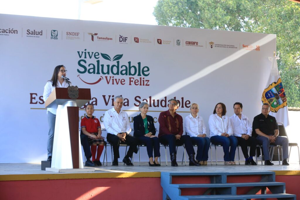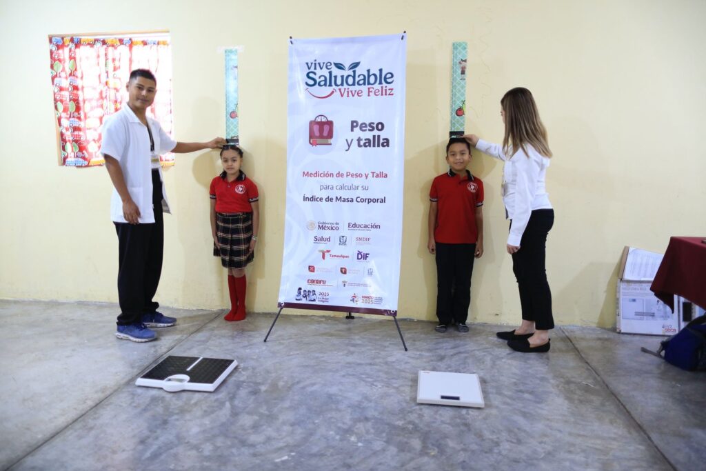 Ciudad Victoria, Tamaulipas.- El gobernador Américo Villarreal Anaya y la presidenta del DIF Tamaulipas, doctora María de Villarreal pusieron en marcha las Jornadas de Salud Escolar “Vive Saludable, Vive Feliz”, una iniciativa de la presidenta Claudia Sheinbaum, mediante la cual 20 brigadas recorrerán el estado para atender a más de 315 mil alumnas y alumnos de 2,094 escuelas primarias a fin de realizar mediciones de peso y talla, revisión visual y de salud bucal, así como fomento de hábitos saludables, creando un expediente digital para cada estudiante.
