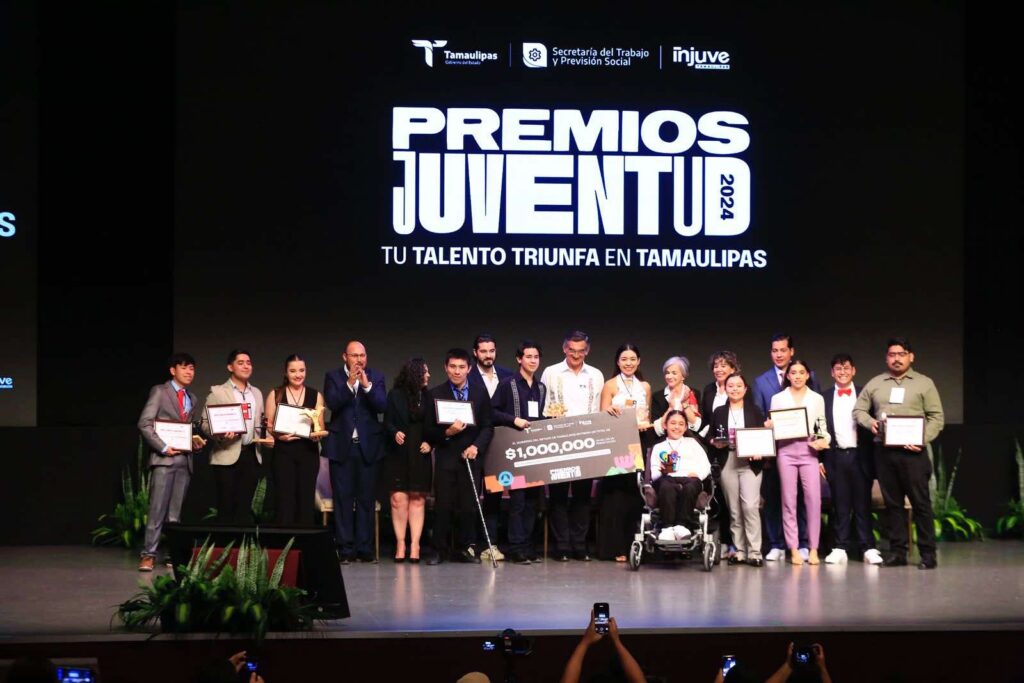 Durante la ceremonia se entregaron los reconocimientos y estímulos económicos a los ganadores de los Premios Juventud 2024: Área de participación Desarrollo Académico, Categoría 12-17 años: Isabela Loredo Carvajal y Categoría 18-29 años: Omar Alejandro Pérez Reyes; Área de participación Cultura y las Artes, Categoría 12-17 años: Dahian Cano Reyes y Categoría 18-29 años: Melisa Castellanos Muñoz; Área de participación Género y Diversidad, Categoría12-17 años: Renata Govea Camacho y Categoría 18-29 años: Maira Alejandra Treviño Cruz.