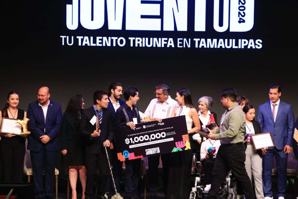 Al presidir, junto con la titular del DIF Estatal, María de Villarreal, la ceremonia de entrega de premios “Juventud 2024, Tu Talento Triunfa en Tamaulipas”, en donde se reconoció a los ganadores del Premio Estatal de la Juventud y del Premio Estatal del Deporte, el gobernador Américo Villarreal destacó que se ha corregido una grave omisión del pasado, que era la falta de una política de juventud robusta, integral y seria.