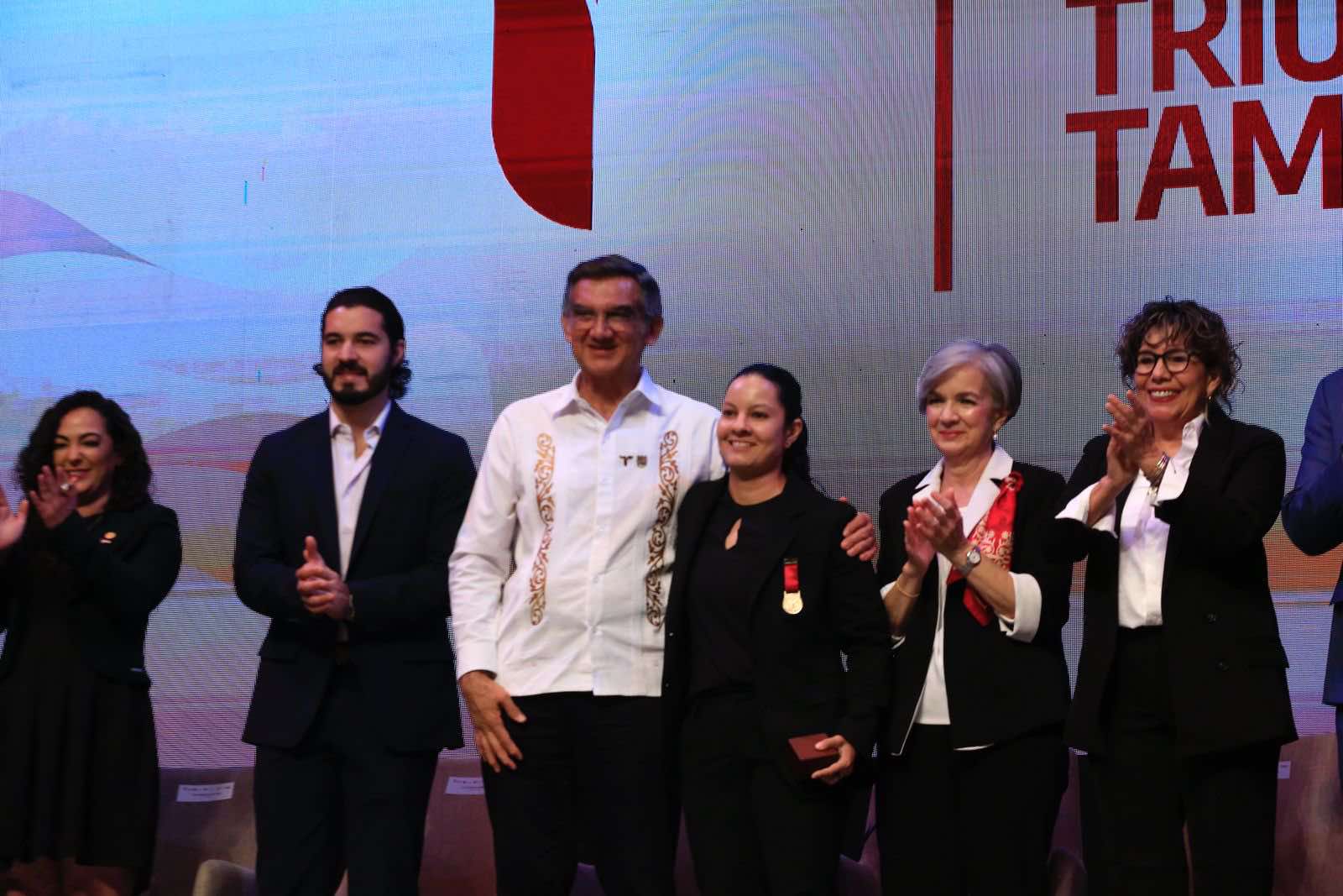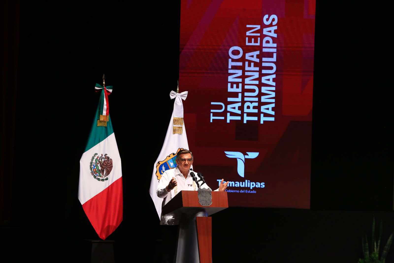 Durante la ceremonia celebrada en el Teatro Amalia G. de Castillo Ledón, el mandatario estatal felicitó a los jóvenes que, con su empeño, disciplina, el trabajo diario, sacrificio, y el dolor físico que implica a veces el aspirar a nuevos tiempos, a nuevos récords, a mayores distancias, se han convertido en referentes de Tamaulipas y reiteró su respaldo para que logren todos sus objetivos y metas.