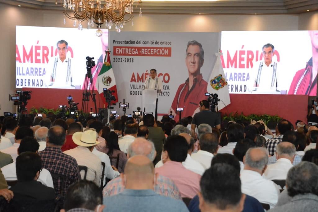 Cd. Victoria, Tam.- El gobernador electo de Tamaulipas, doctor Américo Villarreal Anaya presentó al Comité de Enlace que lo acompañará en el proceso de entrega-recepción de la administración estatal, el cual dijo está integrado por gente honesta, capaz y que comparten un profundo amor a Tamaulipas.