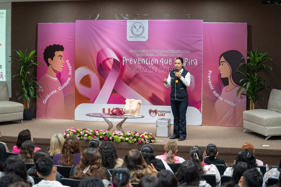Esta actividad forma parte de la serie de eventos que la UAT organiza durante el mes de octubre en sus diferentes dependencias, con el propósito de fomentar la conciencia sobre la detección temprana del cáncer de mama y reforzar el compromiso institucional con la salud integral y el bienestar de su comunidad universitaria.