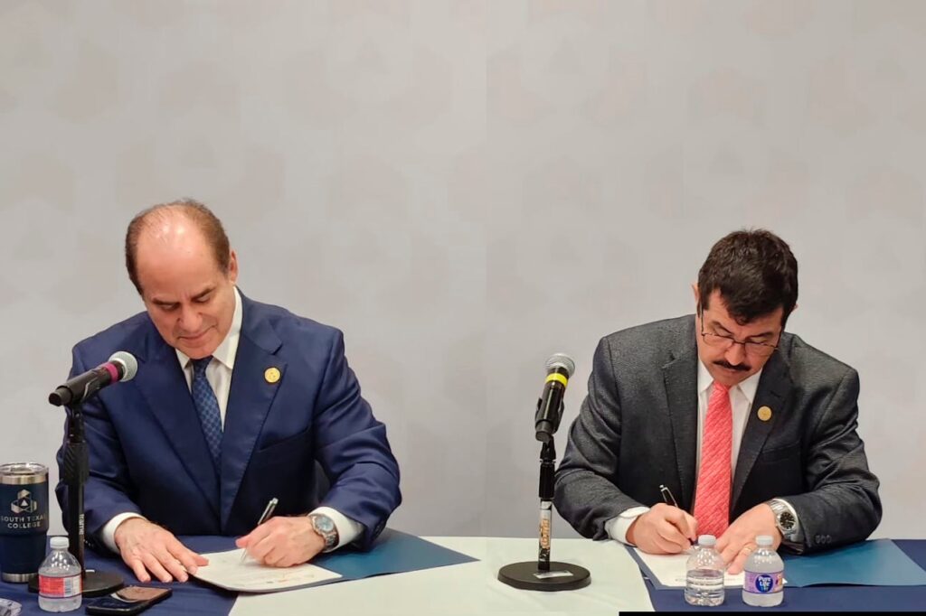 Durante la ceremonia inaugural se llevó a cabo la firma del convenio entre la UAT y el STC, en donde el rector Dámaso Anaya destacó la importancia de fortalecer este espacio de cooperación académica que no solo trasciende fronteras, sino que también impulsa la educación en la región.