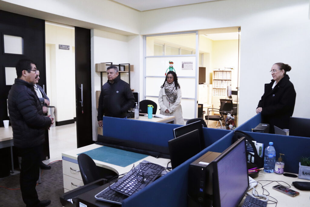 Acompañado por el secretario de Investigación y Posgrado, Fernando Leal Ríos, el rector visitó también la coordinación de Talento Humano, la Dirección de Estudios de Opinión, la Dirección de Posgrado y la Dirección de Investigación, entre otras oficinas ubicadas en distintos espacios del edificio.