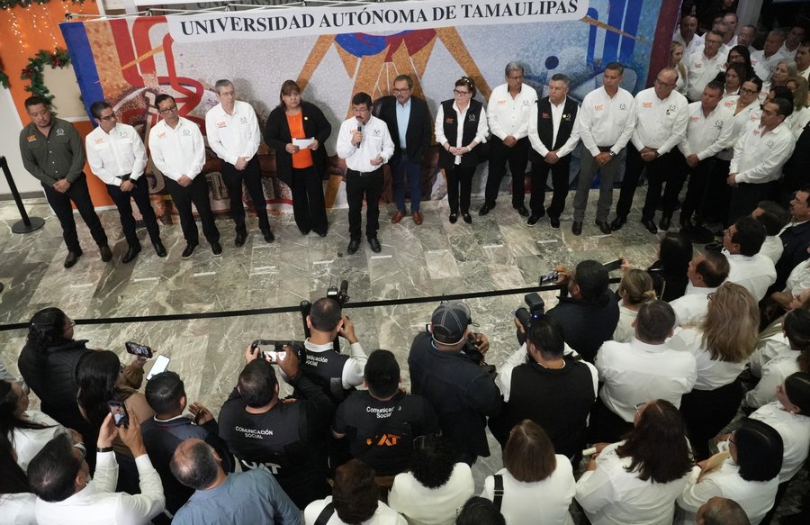 Al presidir la tradicional salutación por el año nuevo con el gabinete de la rectoría, directivos y personal de las dependencias académicas, el rector de la UAT resaltó que la colaboración entre la administración universitaria y el Gobierno de Tamaulipas ha sido fundamental para impulsar el crecimiento y la transformación de la Universidad.