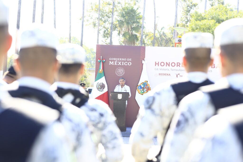 “Que tanto las fuerzas de seguridad como los servidores públicos trabajemos en conjunto, con ahínco, sin descanso, con todo nuestro esfuerzo y tenacidad para lograr estos grandes cambios que trasciendan a nuestra nación”, dijo el gobernador de Tamaulipas al presidir este lunes, la ceremonia cívica de honores ante la presencia de elementos militares, de la Guardia Nacional y servidores públicos del gobierno del Estado.