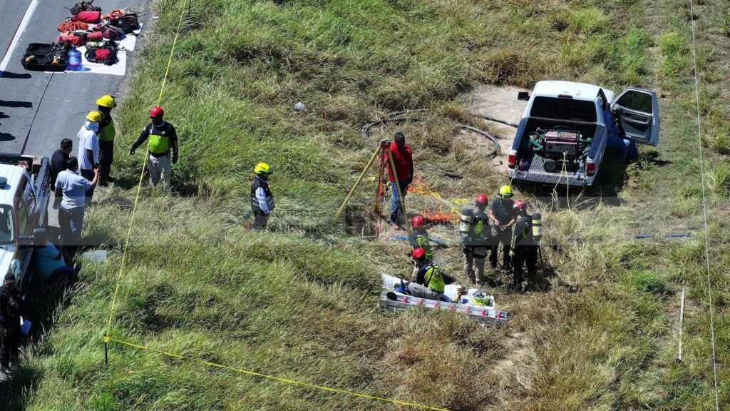 Empleados de Comapa del municipio de Padilla quedaron atrapados dentro de una alcantarilla en la carretera Victoria-Matamoros; uno fue rescatado y trasladado a Ciudad Victoria, mientras permanecen labores de rescate.
